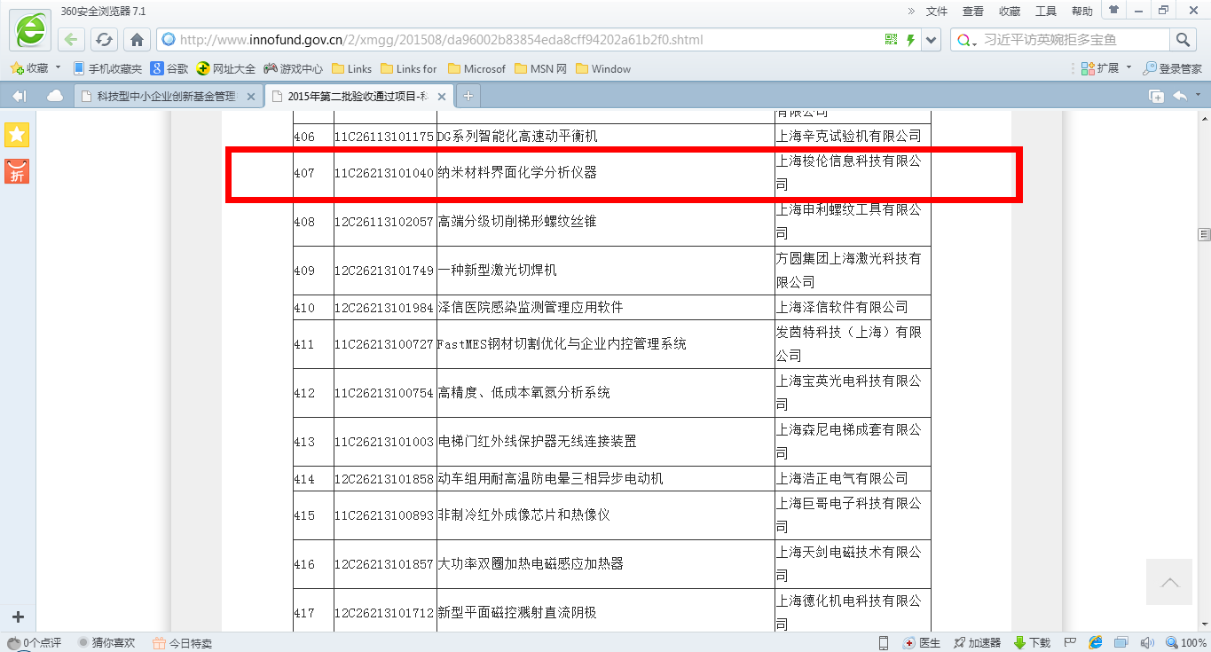 2015年6月,由上海梭倫信息科技有限公司承擔項目研制與銷售的國家創(chuàng)新基金項目-納米材料界面化學分析儀器通過國家科技部驗收。本項目涉及界面化學分析儀器的各種關(guān)鍵分析儀器及其核心技術(shù)。本項目包括了稱重原理的表面張力儀,光學原理的接觸角測量儀以及旋轉(zhuǎn)滴法界面張力儀。